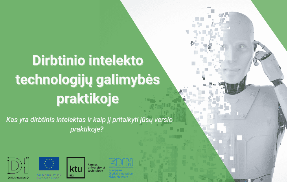 EDIH4LT kviečia visus Vidurio ir Vakarų Lietuvos įmonių ir viešųjų organizacijų atstovus registruotis į dirbtinio intelekto (DI) mokymus “Dirbtinis intelektas: draugas ar priešas?”, kurių metu:
